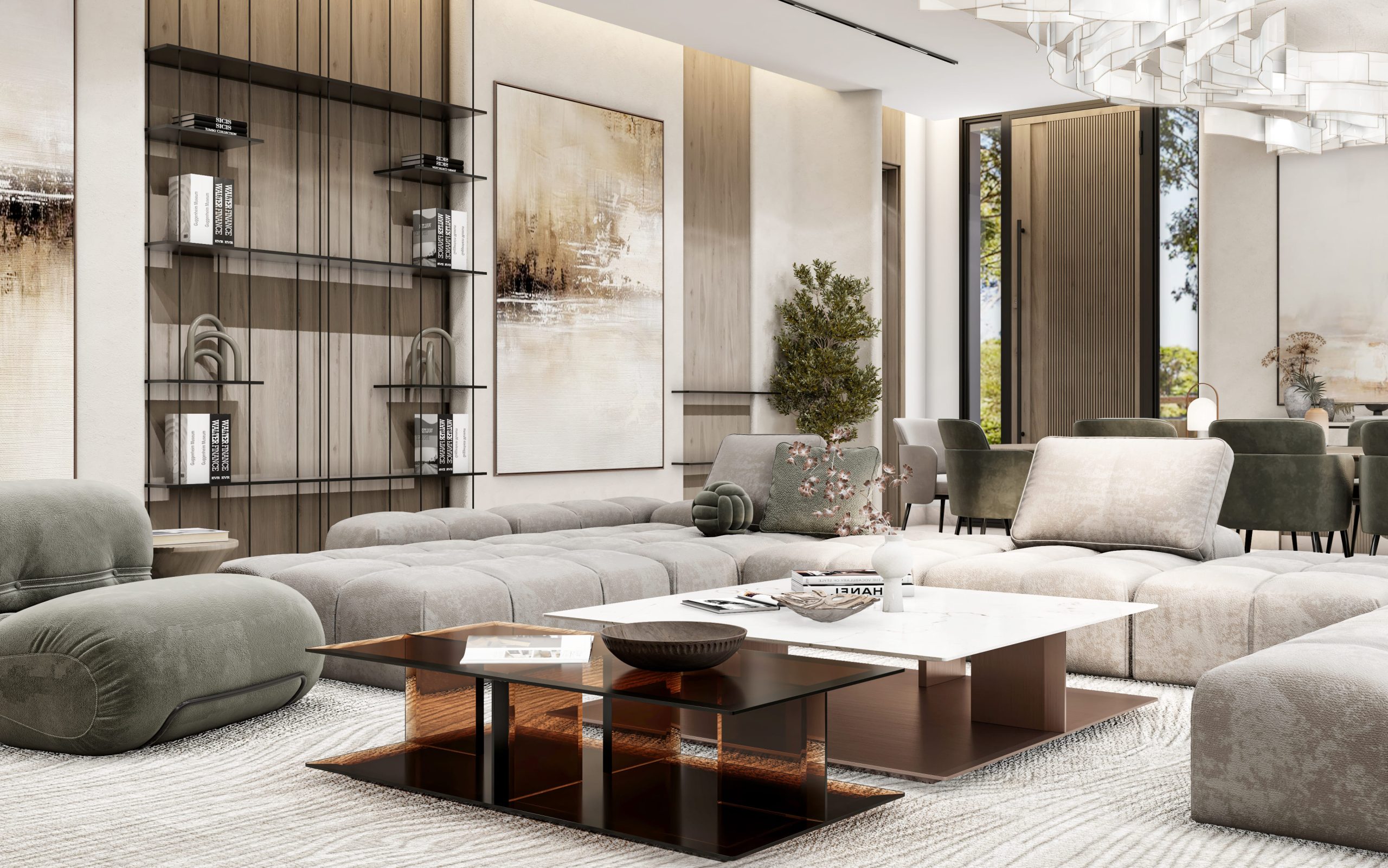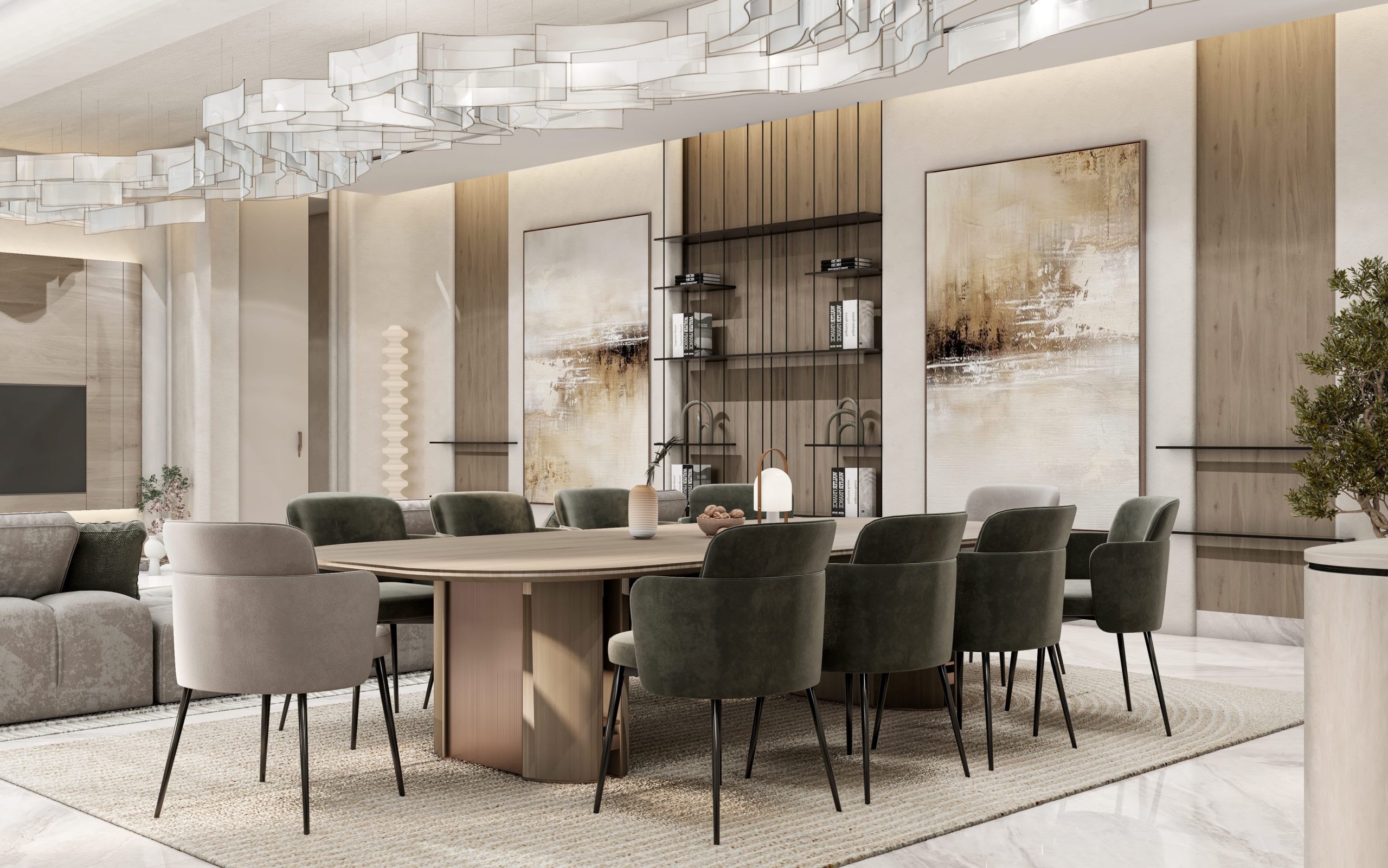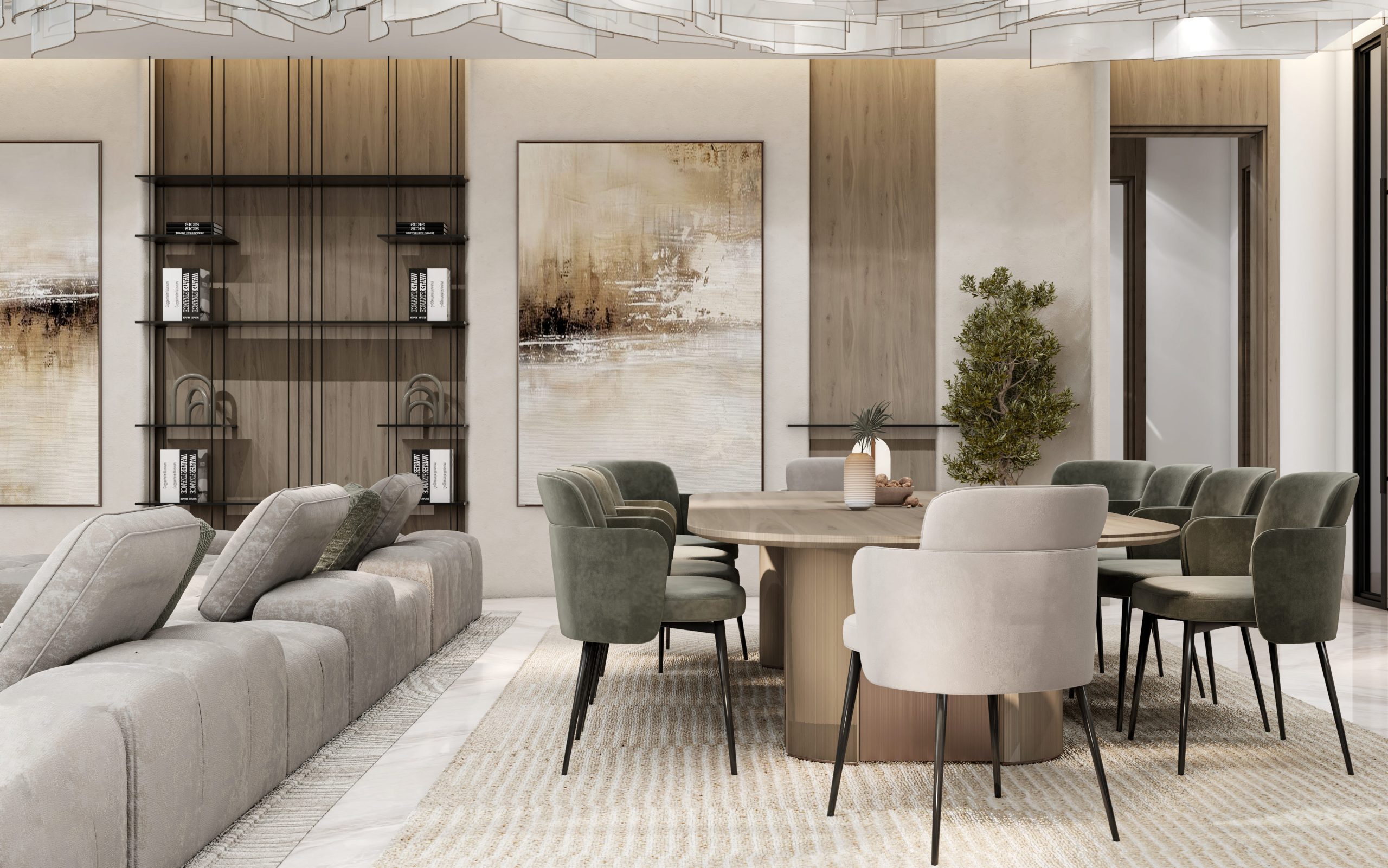 غرفة معيشة عائلية وغرفة طعام