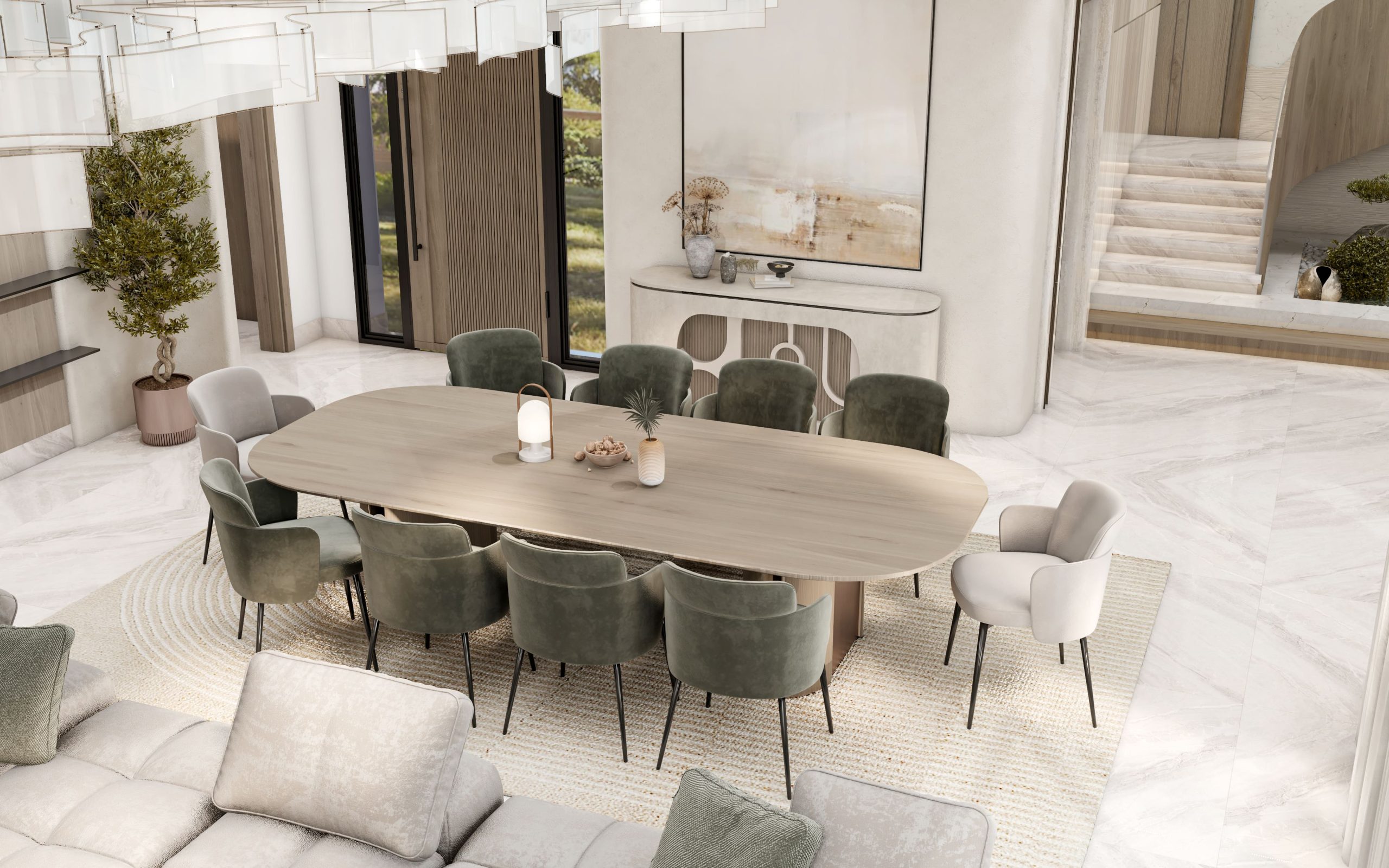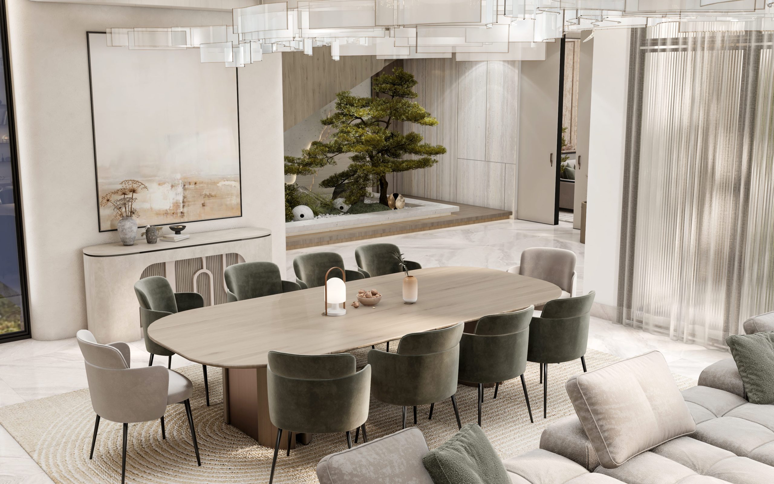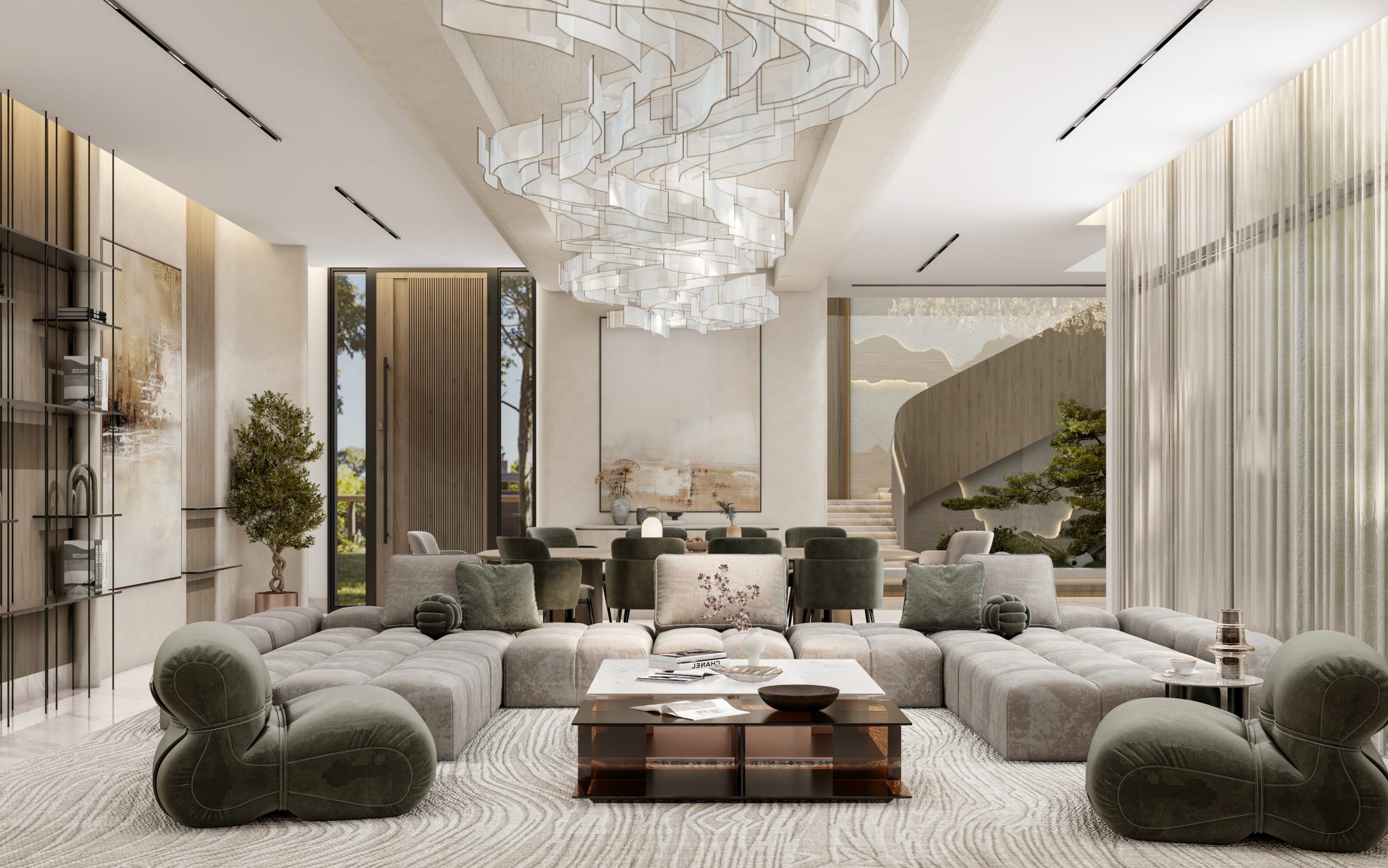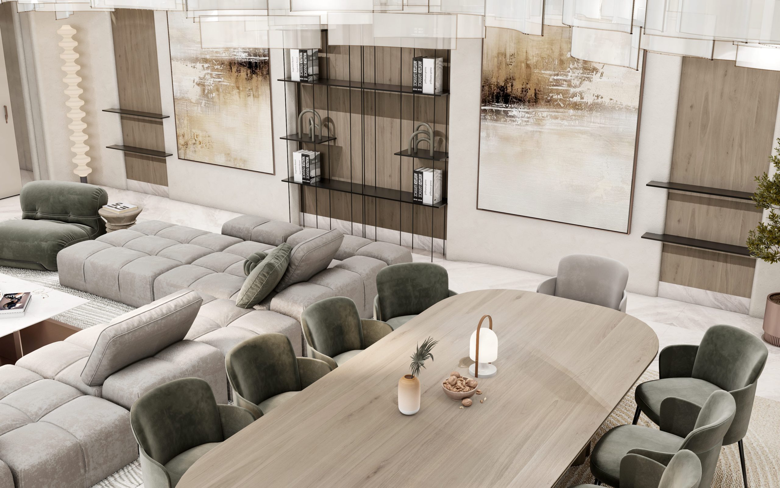 غرفة معيشة عائلية وغرفة طعام